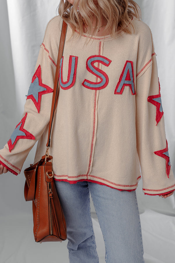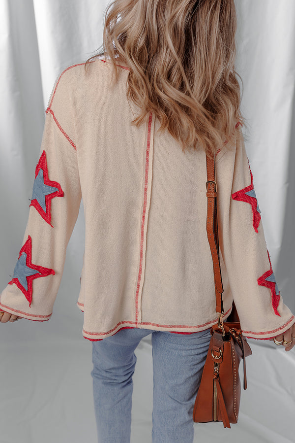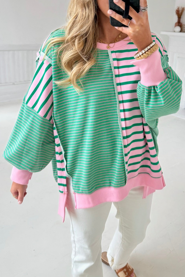 Pink Stripe Exposed Stitching Patchwork Casual Long Sleeve Top