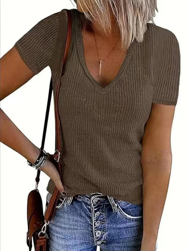 Black V Neck Short Puff Sleeve Contrast Striped Leopard Trim Button Down Shirt