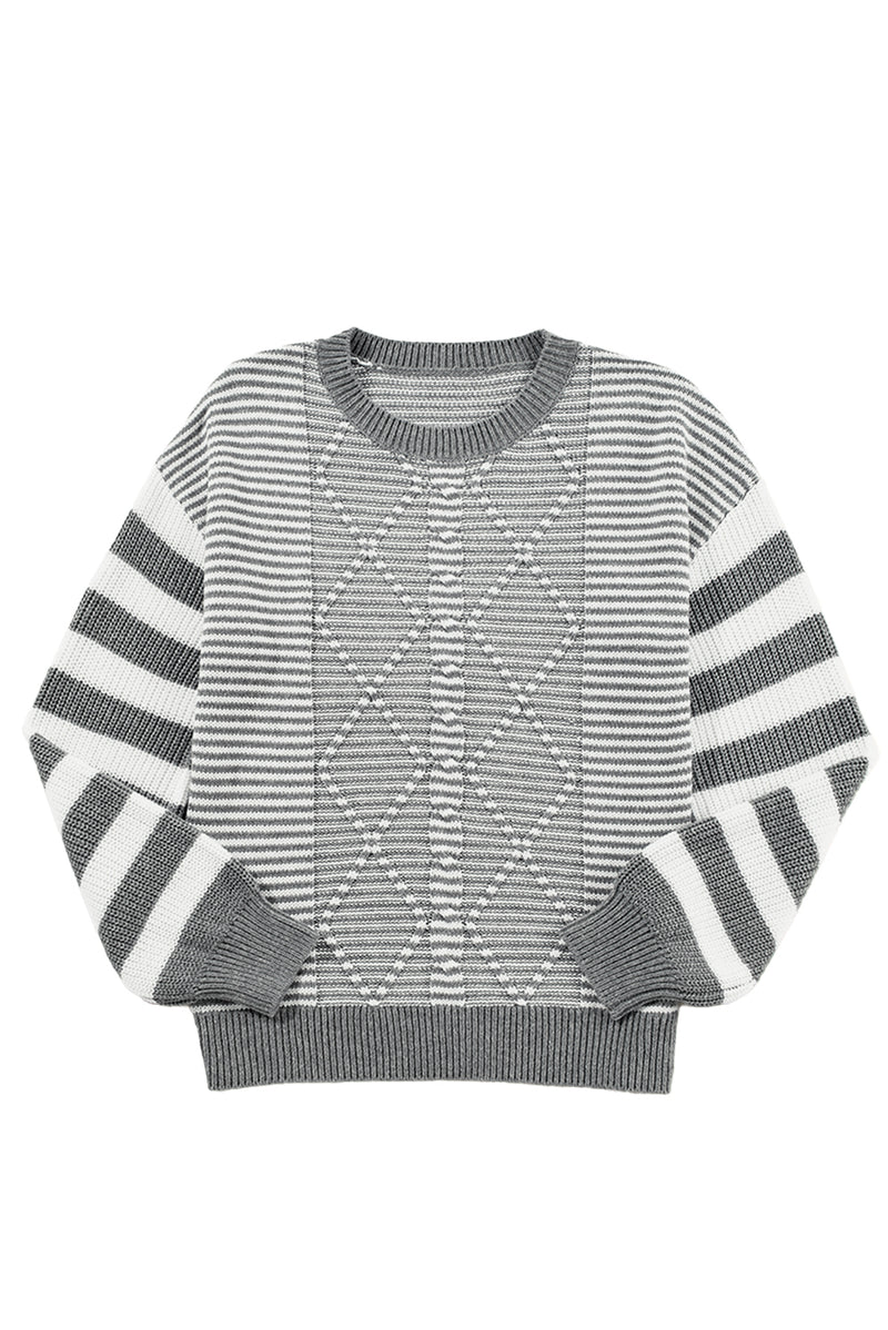 • The twisted knit detail adds texture and depth to this cozy sweater, making it a stylish and versatile piece for chilly days.