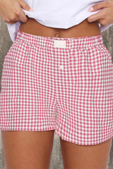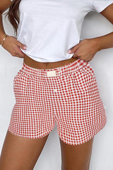 • Embrace vintage charm with these Red Vintage Plaid Print High Waisted Loose Wide Leg Shorts, featuring a classic red stripe pattern that exudes timeless appeal.